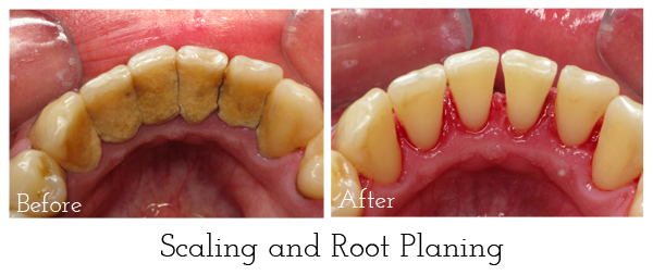 Scaling and root planing AKA Deep Cleaning is a procedure involving removal of dental plaque and calculus and then smoothing of the exposed root surfaces removing cementum or dentin that is impregnated with calculus or microorganisms.In some cases depending on the severity topical or systemic antibiotics may be required to make sure all the infection is eradicated.